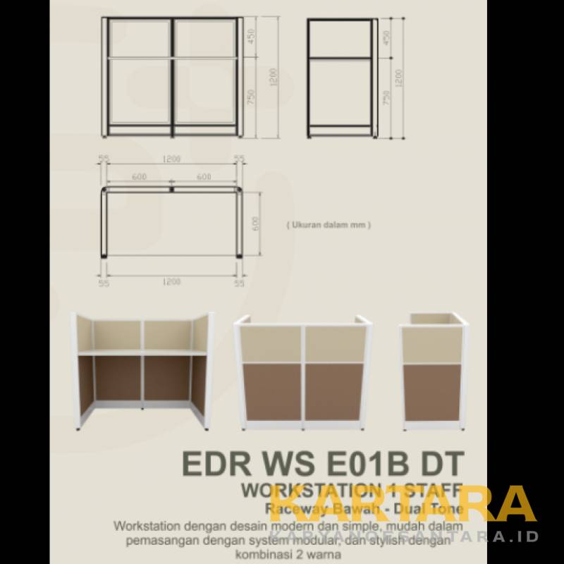 Home Karya Noesantara Furnitur Workstation Workstation E 1 Staff ( Raceway Bawah – Dual Tone )